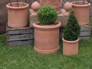 CYLINDRES: En terre cuite de Toscane. Disponibles en 2 modèles: lisses (7 tailles) ou décorés (3 modèles: putti, chanteurs, musiciens).