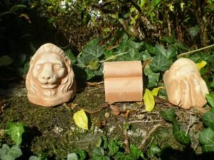 MASQUES: En terre cuite de Toscane. 5 modèles disponibles: Lion, Bacchus, Eole (3 tailles), 4 Saison et Chimère. Certain sont pourvus d’un trou pour insérer un robinet pour créer une fontaine.