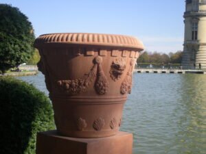 CONCA: En terre cuite de Toscane. Pot traditionnel Toscan sans (lisse) ou avec décor (rosace, fruits, “feston” (guirlande de fleurs) ou autres), de forme conique tronquée à sa base.