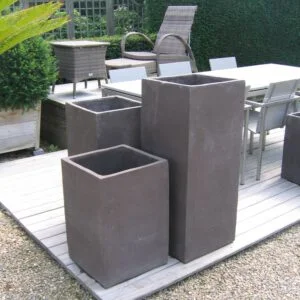 DESIGN: Pots en terre cuite de Toscane de formes modernes: formes carrées, rondes (basses et hautes), autres formes. Disponible en plusieurs coloris.
