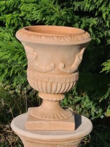 COUPES : En terre cuite de Toscane. Les coupes se déclinent sous trois formes: Vases sur pied, vasques et autre coupes. Coupe traditionnelle Toscane, elles ne sont pas toutes à fond perforé.