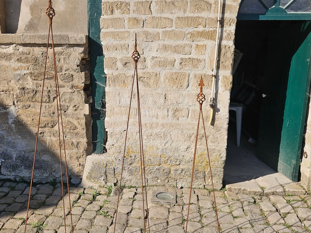 Tuteur avec 3 montants, surmonté par une fleur de lys.